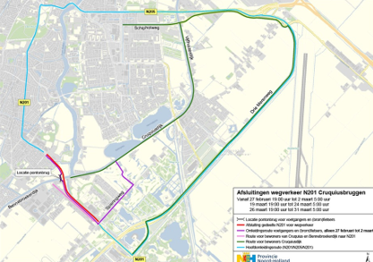 Tijdens deze periodes is de N201 volledig afgesloten voor autoverkeer in beide richtingen tussen de Spieringweg (Haarlemmermeer) en de Javalaan (Heemstede).